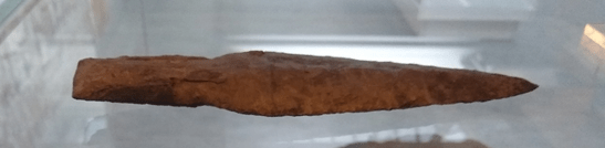 Fig 3: Photo of a flint dagger blade at the British Museum.