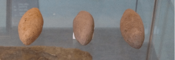 Fig 2: Photo of three torpedo-shaped objects at the British Museum.