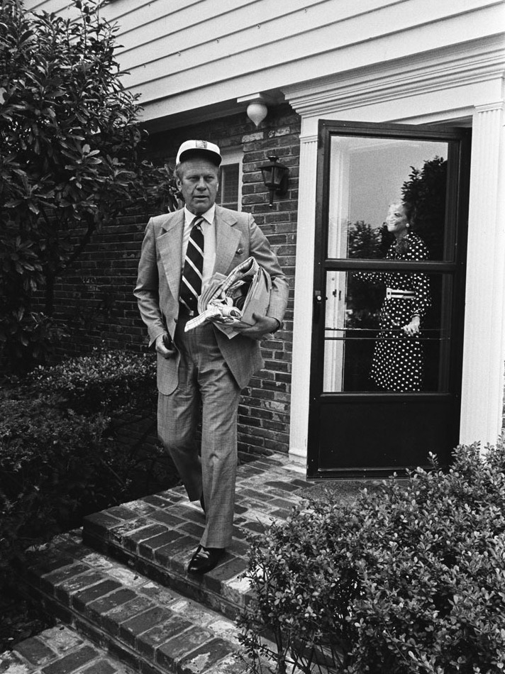 In her biography, First Lady Betty Ford described the scene of “the President of the United States, in baby-blue short pajamas, appears on his doorstep looking for the morning paper, then goes inside to fix his orange juice and English muffin” before beginning his daily commute to the White House. Police blocked off the streets from vehicle access. The Secret Service escorted the president on the thirty minute drive each day. Various television trucks were camped on the ends of the street for days and Ford’s house was wired with security equipment and surveillance cameras. For those ten days, the normally quiet suburban drive was the center of political focus. Despite all this fervor, one neighbor found it delightful “to think that the President of the United States lived on Crown View Drive” in a red brick house like theirs.