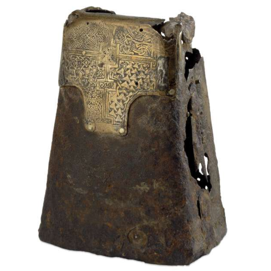 Arriving at the modern day, the importance of early medieval artefacts in constructing Irish national identity is clear from a recent suggestion that it be permanently returned to County Donegal after it was briefly loaned out from the British Museum for an exhibition there. Although the idea that medieval Ireland was defined by the Christian church (what is often termed the ‘saints and scholars’ narrative) is a simplified way of looking at a complex period of different influences and interactions, certain craft traditions such as ironworking undoubtedly flourished under ecclesiastical patronage. Centuries on from its original creation and later embellishments, the handbell of St Conall Cael continues to be a part of a multitude of stories and provides an insight into big themes of Irish history, as a single but nonetheless vocal object with a vibrant biography.