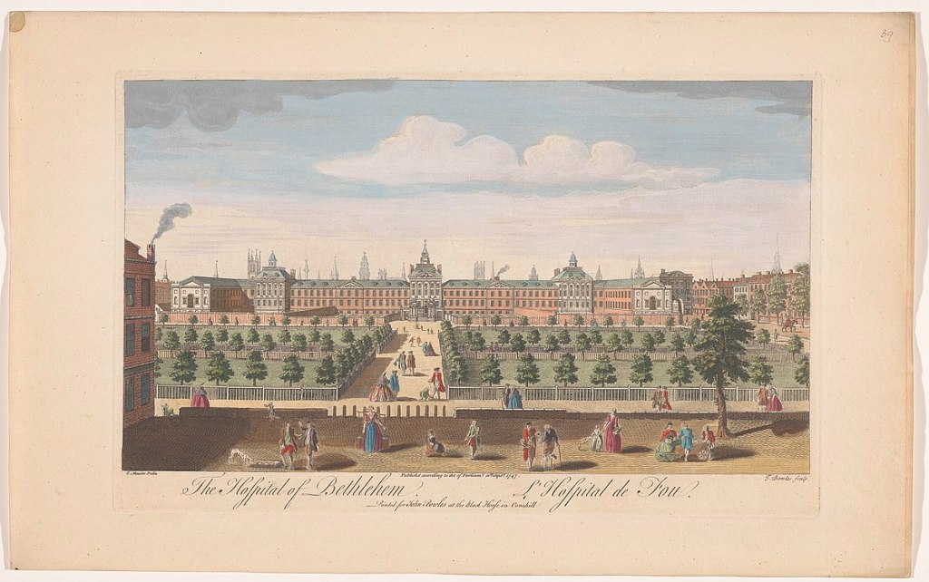 Featured image credit: Gezicht op Bethlem Royal Hospital te Londen is in the public domain. Accessed via WikiCommons: File:Gezicht op Bethlem Royal Hospital te Londen The Hospital of Bethlehem (titel op object), RP-P-1932-420.jpg – Wikimedia Commons