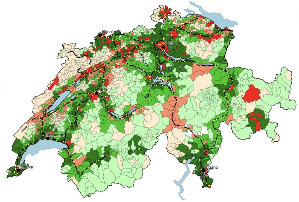 Figure 3: Relative Population Gains by Swiss Municipality 1960-2010.