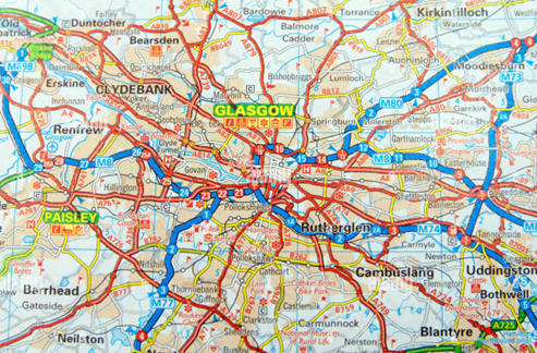 Figure 5: Map of the Motorways and Arterial Roads of Glasgow.