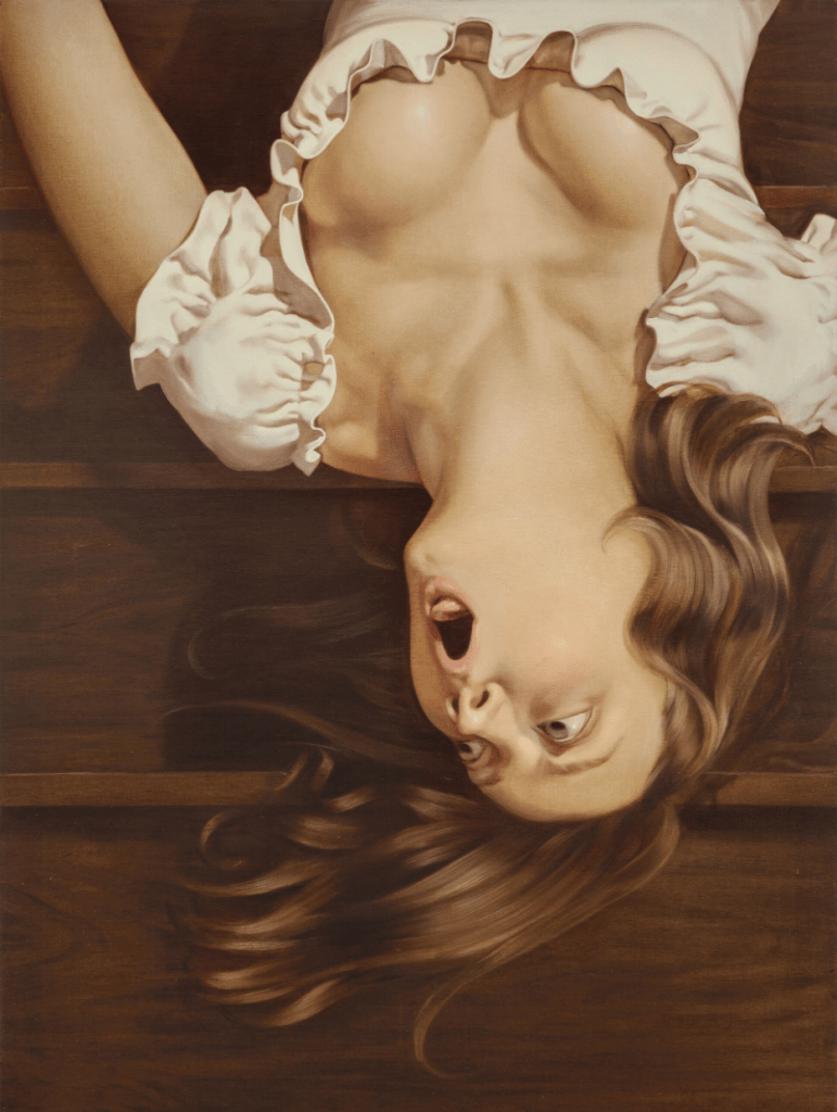 Composed by the youngest artist ever signed at gallery giant Gagosian – thirty-year-old Anna Weyant – who has been described as “wickedly savvy, unexpectedly blunt, and sometimes a bit vulgar”. Weyant has exhibited multiple times with Gagosian. Her debut, Baby, It Ain’t Over Till It’s Over closed at 980 Madison Avenue, New York on December 23, 2022. Each successive year has observed an exhibition of Weyant’s work. The Guitar Man closed at one of Gagosian’s Paris outposts, 9 rue de Castiglione, on December 22, 2023; Who’s Afraid of the Big Bad Wolves ran at Gagosian’s London Davies Street location and closed December 20 of last year. Weyant’s exhibitions with Gagosian have been supplemented by a slew of highly tasteful, prestigious commissions. The New York Metropolitan Opera commissioned a piece by Weyant to adorn the Lincoln Centre ahead of, and during, their staging of Giuseppe Verde’s La Forza Del Destino. Most recently, Weyant has reimagined the Lady Dior – the cult handbag hailing from French designer Christian Dior; named for its most iconic patron the late Princess Diana – for the ninth edition of the Dior Lady Art Project. The American edition of Jen Beagin’s Big Swiss features Weyant’s Falling Woman as it’s cover art. The original painting sold at Sotheby’s New York for $1.62 million in 2022.