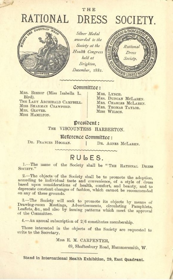 Figure 1: Rules of the Rational Dress Society printed in Viscountess Harberton’s Reasons for Reform in Dress. Accessed via Untold Lives Blog: https://blogs.bl.uk/untoldlives/2021/10/the-rational-dress-society.html