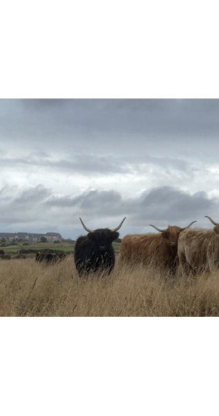 Figure 4: Highland cows at Kinkell Byre with the Fairmont Hotel in the background.