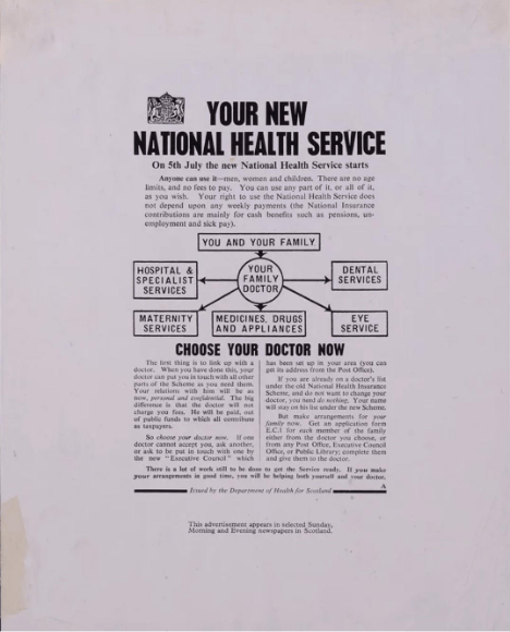 In May 1948, the above advert appeared in Scottish newspapers to teach people about how the new, soon-to-be introduced National Health Service would work. Issued by the Department of Health for Scotland, the advert lays out the benefits of the new service while aiming to ease existing fears amongst the public.