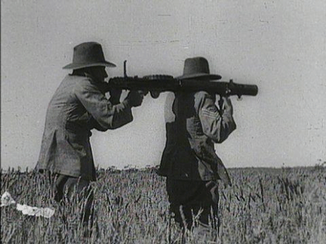 On 2 November 1932, three members of the Royal Australian Artillery, Major Gwynydd Purves Wynne-Aubrey Meredith in command, Seargent S. McMurray, and Gunner J. O’Halloran, were deployed to the Campion region of Western Australia. They had been equipped with two Lewis machine guns and ten thousand rounds of ammunition. They were also joined by the farmers and a cinematograher. (see figure 2)